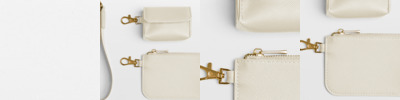 100% leather-look PU. Saffiano fine grain.Three piece design.Detachable webbing wristlet strap.High shine gold metal trims.Headphone case with press stud closure.Zip card wallet.Tear out label.