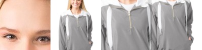 This lightweight pullover locks in color and wicks moisture. It's versatile enough for year-round wear. 3.8-ounce, 100% polyester interlock with PosiCharge technology Tear-away removable label Cadet collar Reverse coil zipper Set-in sleeves Open cuffs and hem