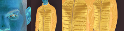 Polyamide ripstop quilted body. 90% polyester/10% elastane sleeves, sides and back. Polyester padding. Showerproof. Full length contrast zip. Two front zip pockets. Elasticated bound collar, cuffs and hem. Access for decoration.