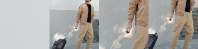 - Adjustable snap closing ankles on trousers