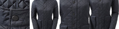 External central storm flap with internal coil zip, signature zip puller and visible stud fastening. Diamond stitched sandwiched baffles. 120gsm lightweight polyester fill. Central storm flap with internal zip fastening. Internal signature back neck hanger loop. Stud opening at cuffs. Lower body patch pockets with flap and stud fastening. Product contains no branded neck label.* Removable Kimble or looped garment tags. Inner seam label holds important product information on one label with a second label containing brand information which can be cut-away.
