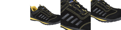 Low profile fashionable safety trainer with eye catching black / yellow colouring. Heat resistant rubber out-sole with steel toe-cap and mid-sole. Conforms to EN 20345: 2004+ A1:2007 Size 4, 5, 6, 7, 8, 9, 10, 11, 12