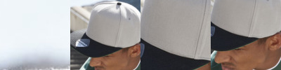 100% polyester twill. 5 panel. Stitched eyelets. Flat peak. Authentic visor sticker. Green underpeak, black/black/black has self colour. Retro style snapback size adjuster.