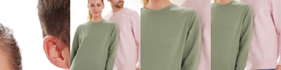 71% organic cotton/21% recycled PET french terry/8% viscose. Organic or in-conversion to organic cotton. Drop shoulder style. Ribbed collar, cuffs and hem. Herringbone taped neck. Tear out label.