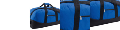 600D polyester. Carry handles with pad. Detachable adjustable shoulder strap. Haul handles at each end. Main zip compartment. Front zip pocket. Baseboard. Studded base. Capacity 54 litres.