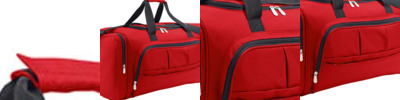 600D polyester. Carry handles with pad. Detachable adjustable shoulder strap. Large main compartment. End zip pockets. Front zip pocket. Baseboard. Studded base. Capacity 48 litres.