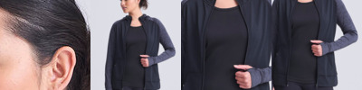 Feminine fit sports zoodie with adjustable drawcords hood, raglan sleeves with thumb holes and full-front zip. Contrast fabric on sleeves and body.