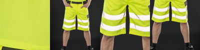 Partially elasticised waistband with belt loops. Rear patch & ruler pockets. Black contrast panels. Bar tack stress points. Reflective leg bands. Side cargo pocket. Front slit & zip pockets. Hammer loop. Generous fit. Ready to band – cut away label. Tough & hardwearing with mechanical stretch. EN ISO 20471:2013 Class 1.