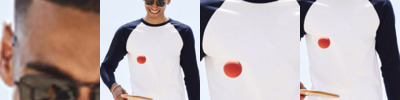 100% cotton. Cotton/Lycra® contrast ribbed collar. Contrast raglan sleeves. Twin needle stitching. Cut out label.