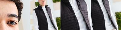 Recycled polyester outer with cire finish. Recycled Thermo-Guard® insulation. Recycled polyester lining. Showerproof. Full length zip with chin guard and inner zip guard. Two front zip pockets. Stretch bound armholes and hem. Cut out label.