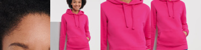 80% combed ringspun cotton/20% polyester. Cotton faced fabric. Brushed back fleece. Drop shoulder style. Ladies fit. Double fabric hood with topstitch detail. Flat lace drawcord with buttonhole eyelets. Taped neck. Front pouch pocket with bartacks. Ear phone access. 1x1 ribbed cuffs and hem. Coverseamed around hood, shoulders, armholes, cuffs and hem.