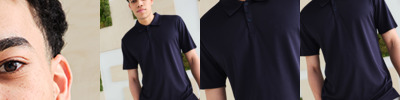 100% recycled polyester. Quick drying, easy care piqué fabric. Anti-bacterial finish. Self fabric collar and cuffs. Three self colour button placket. Twin needle stitching. Cut out label.