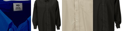 3.4 oz., 55% cotton, 45% polyester; Fine yarn count shirting; True Non-iron performance straight from the dryer; stain release finish; Classic Fit for professional appearance; Patented pucker-free taped seams; Fused collar cuffs and placket; Split back seam with bias cut back yoke; rolled button-down collar; adjustable Comfort Collar for up to an inch of stretch at neck; left-chest pocket; pearlized buttons;