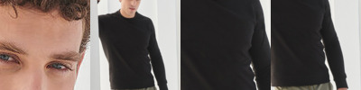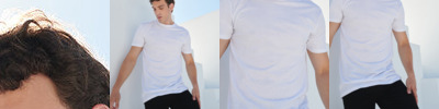 Tear-out SF (Skinnifit) label. Regular fit at chest and shoulders. Extra-long length, with longer dipped hem at back. Twin-needle stitching. Stretch rib neck.
