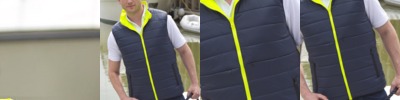 Nylon quilted front panel. Polyester padding and lining. Knitted polyester back and sleeves. Brushed inner. Super stretch fabric and seams allow for natural movement. Stand up collar. Full length YKK zip with chin guard. Interchangeable colour zip pulls. Two front zip pockets. Inner zip pocket. Bound cuffs and hem. Tag free.