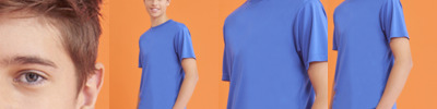 100% polyester. Relaxed fit. Neoteric™ smooth fabric with inherent wickability and quick drying properties. UPF 30+ UV protection. Self fabric collar. Taped neck. Twin needle stitching. Tear out label.