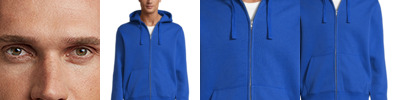 80% ringspun cotton/20% polyester. Cotton faced fabric. Brushed back fleece. Drop shoulder style. Lined hood with self colour drawcord. Taped neck. Locker patch. Full length YKK zip. Front pouch pockets. Ribbed cuffs and hem. Unbranded size label at neckline.