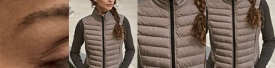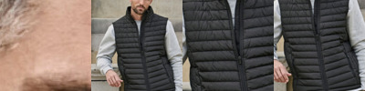 20D nylon outer. Polyester padding. Nylon lining. Showerproof and windproof. Stand up collar. Collar high full length zip with inner zip guard. Front and inner zip pockets. Elasticated cuffs. Adjustable drawcord hem. Cut out label. Access for decoration.