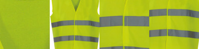 100% Polyester fabric with Velcro fastening. Two 5cm width reflective tapes around the body. Hi-Vis Yellow &
