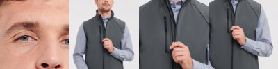 Three layer soft shell. 92% polyester/8% elastane woven outer. Performance membrane. Polyester micro fleece inner layer. Showerproof, windproof and breathable. Mesh lined front panels. Full length zip with inner zip guard. Right chest zip pocket. Two front zip pockets. Drawcord drop hem.