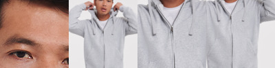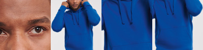 80% combed ringspun cotton/20% polyester. Cotton faced fabric. Brushed back fleece. Drop shoulder style. Double fabric hood with topstitch detail. Flat lace drawcord with buttonhole eyelets. Taped neck. Full length covered YKK zip. Front pouch pockets. Ear phone access. 1x1 ribbed cuffs and hem. Coverseamed around hood, shoulders, armholes, cuffs and hem.