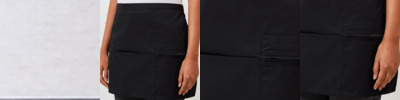 65% polyester/35% cotton twill. Crease resist finish. Easy care fabric. Two side zip pockets. Open middle pocket - tablet friendly. Self fabric 90cm ties. Width 60cm. Length 33cm. Industrial laundry 85°C. Domestic wash 60°C.