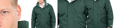 190T polyester pongee StormDri 2000 PU coating. Quilted polyester lining. Waterproof 2000mm with taped seams. Windproof. Concealed adjustable hood. Full length zip with tear release storm flap. Inner pocket. Two front pockets with storm flaps and fleece lining. Inner elasticated cuffs and reflective cuff detail. Adjustable drawcord hem. Cut out label. Access for decoration.