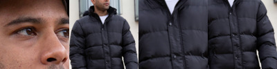 210T nylon with acrylic coating. 2x2 diamond stitching. Polyester padding. Polyester fleece lining. Showerproof and windproof. Corduroy inner collar. Full length two way zip with studded storm flap. Right chest zip pocket. Two patch pockets with stud closure and handwarmer side entry. Rear studded saddle vents. Back panel detail. Bound open cuffs. Open hem. Cut out label.