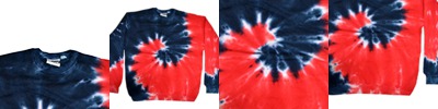 8.5 oz., 80% cotton, 20% polyester; Hand-dyed color combinations; No two are exactly alike; Wash separately; Reactive dyed tie-dye;