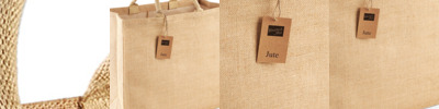 Laminated jute. Cotton carry handles (37cm long). Capacity 29 litres.
