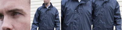 100% polyester with PVC inner coating. Waterproof 2000mm with fully taped seams. Windproof. Concealed hood. Full length zip with studded storm flap. Mesh ventilation panel on back. Two front pockets. Inner elasticated cuffs. Adjustable drawcord hem. Cut out label. Co-ordinates with RS226.