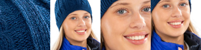 100% acrylic outer with polyester lining. Windproof. Chunky cable knit. Ribbed hem.