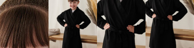 Kimono style children's robe, lightweight fabric, tie front, short style. Keep away from fire.