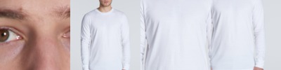 Neoterictm textured fabric with inherent wickability. UPF 30+ UV protection. Self fabric collar. Self fabric taped back neck. Raglan sleeves. Contrast inserts on front and back of sleeves.
