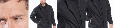 100% polyester. Mesh lining. Showerproof and windproof. Full length Ezee™ reverse zip. Media pocket. Two front zip pockets. Reflective trim on arms. Contrast panels on black/zoom grey. Quick dry elastic bound cuffs. Adjustable drawcord hem. Curved back hem.