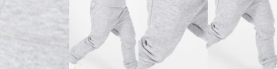 Heather grey 75% ringspun cotton/25% polyester. Soft cotton faced fabric. Brushed back fleece. 1x1 ribbed waistband. No drawcords to comply with EU regulations. Two side pockets. Cuffed leg ends. Tear out label.