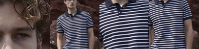 100% cotton single jersey. Flat knit collar and cuffs. Contrast collar, inner placket and cuffs. Three contrast button placket. Herringbone taped side vents. Twin needle hem. Tag free.