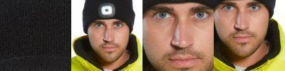 100% acrylic. Cuffed style. Removable LED front light. Beam distance: 10m (high) 5m (medium). USB rechargeable battery. Run time of 2-4 hours.