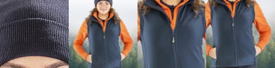 Decorative top stitch. Full front zip. Zip closing front pockets. Chin guard. Elastane-free, crimped yarn stretch easy to print fabric. Ready to brand tearaway label. Microfleece inner provides extra warmth. Decorating methods: Embroidery, Screen print, and Transfer. Decorator's access point: Open.