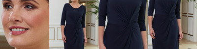 95% polyester/5% elastane. Stretch lining. Scoop neckline. ¾ length sleeves. Waistline detail. Machine washable.