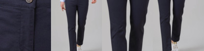 97% cotton/3% elastane. Slim fit. Stretch waistband. Flat front. Belt loops. Zip fly with button over. Two side pockets. Rear jetted pockets.