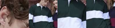 100% ringspun cotton single jersey. Heavyweight. Traditional white woven collar and inner placket. Herringbone taped neck and shoulders. Concealed two rubber button placket. Sewn-in contrast stripe around the body and sleeves. Elastane ribbed cuffs. Contrast herringbone taped side vents. Twin needle hem. Tag free. For leisure use only.