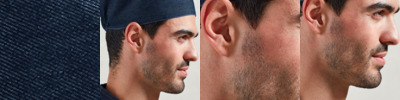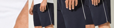60% cotton/40% polyester. Colours and checked 65% polyester/35% cotton. Denim 60% cotton/40% polyester. Easy care fabric. Flat top style. Elasticated back. Crease resistant finish. Industrial laundry 85°C. Domestic wash 60°C.