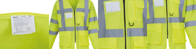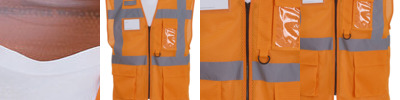 Conforms to EN ISO20471:2013 Class 3 and Orange is also RIS-3279-TOM Railway use certified; 5cm wide reflective tapes around the body and arms; One over each shoulder; Mobile phone/walkie-talkie pocket to front left chest; Full length front zipper fastening; Two bottom pockets with flaps and accessible from both the top and the side; Pen pockets and key holder; ID pocket on right hand chest; Large area on reverse for decoration.
