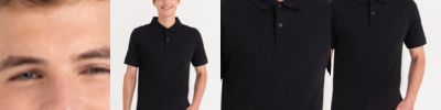 97% cotton/3% elastane. Fashion stylish fit. 1x1 ribbed collar and cuffs. Taped neck. Two self colour button placket. Side vents. Twin needle sleeves and hem. Unbranded size label.