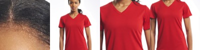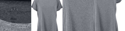 Short sleeve v-neck with curved hem. Relaxed fit in feminine contoured design. Inherent moisture wicking to keep you dry and comfortable. Treated with BodyFreshe to inhibit growth of odor causing bacteria. Breathable, easy care. 100% microfiber polyester oXy mesh. S - 3X