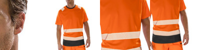 Top stitched shoulder and sleeve detail. Easy-stretch, printed safety bands. Contrast black panel and collar. Stretch ribbed collar. Innovative dark panel design to mask grime. Made from highest quality yarns EN ISO 20471: 2013 + A1:2016 Class 2 / Ris-3279-Tom Class 2 (orange only).
