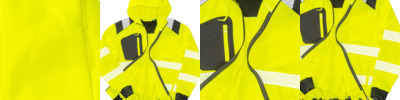Hoody with heavy stretch rib cuffs and waistband. Easy-stretch, printed safety bands. Full front YKK zip and puller. Zipped front and chest pockets. Warm bushed fleece inner. Hood with drawcord. Hang loop. Recycled REPREVE® performance recycled fabric. EN ISO 20471: 2013 + A1:2016 Class 2 / Ris-3279-Tom Class 2 (orange only).