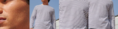 Single jersey back neck tape. Neck, waist and cuff in cotton/elastane rib.