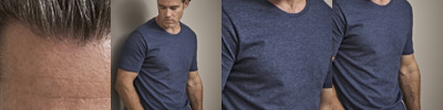 50% ringspun cotton/50% polyester. Enzyme washed. Fashion fit. Narrow ribbed collar with elastane. Taped neck and shoulders. Side seams. Twin needle sleeves and hem.
